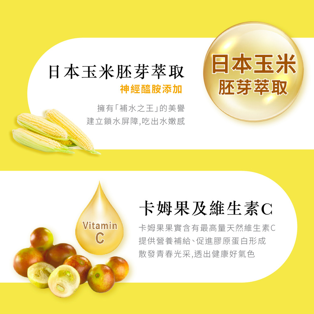 2.日本玉米胚芽萃取,擁有「補水之王」的美譽,建立鎖水屏障,吃出水嫩感